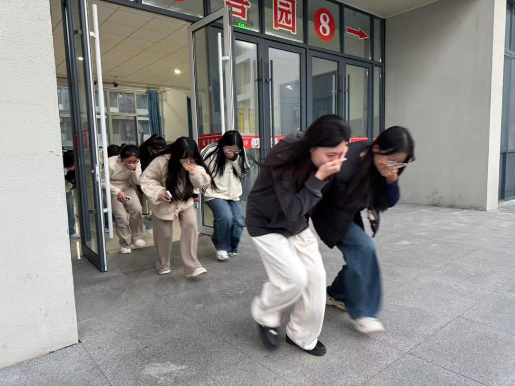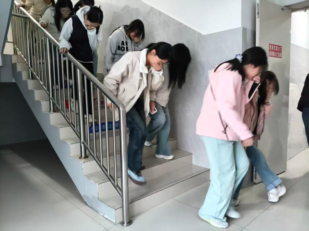 当急促的消防警报声响起,演练正式启动。各楼层党员疏导员迅速到位,按照预定方案引导同学们用湿毛巾或衣物捂住口鼻,弯腰低姿贴近墙壁,避开电梯,从疏散楼梯快速有序撤离。过程中,党员同志们冲锋在前,主动帮扶行动不便的同学,及时劝阻不规范行为,确保整个疏散过程紧张有序、无拥挤推搡现象。同学们在党员先锋的带领下,严格遵守演练要求,展现出良好的集体意识和应急素养。