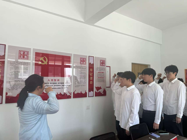 活动伊始,主讲人首先介绍本次入党宣誓活动的筹备情况与意义,并郑重宣读参与宣誓的党员名单,每一个名字都承载着沉甸甸的责任与光荣。随后,在员工党支部书记邵园园的带领下,全体党员高举右拳、面向党旗庄严宣誓,铿锵有力的誓言不仅是对共产主义事业的坚定承诺,也是践行初心使命与矢志跟党走的坚定宣告。最后,主讲人特别强调,员工党员要紧密结合学习、工作和生活实际发挥党员先锋模范作用,奋力成长为堪当民族复兴大任的时代新人,以实际行动夯实公司党建工作根基,推动党建引领育人工作走深走实,为培养担当民族复兴大任的时代新人注入红色动能。