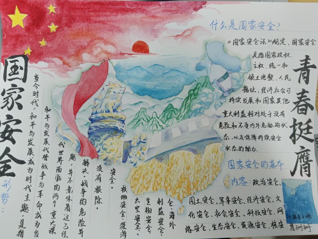 活动一经推出,同学们热切响应,积极参与,在认真学习国家安全有关知识的基础上,围绕党的二十大对国家安全做出的重大战略部署以及总体国家安全观的所学所感,用手中的画笔绘制出一幅幅主题鲜明、图文并茂、内容丰富、设计新颖的国家安全手抄报。手抄报作品围绕国家安全宗旨、如何维护国家安全、国家安全的意义等多个角度,表达了新时代青年对国家安全的理解和认识。