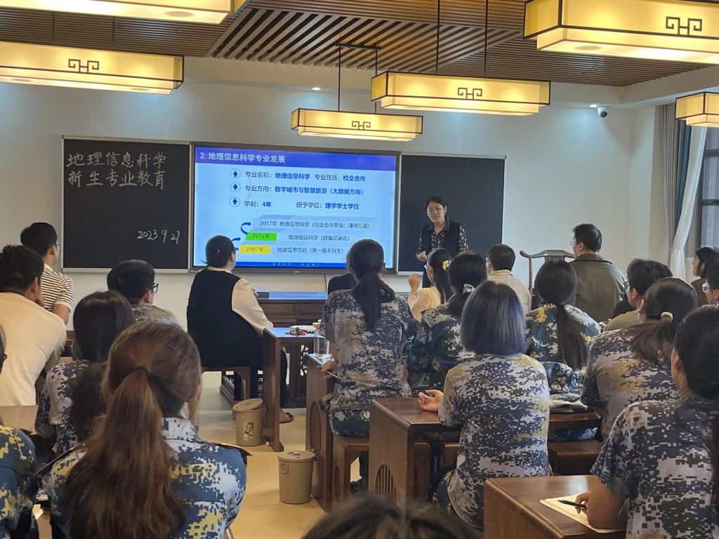 金秋九月,丹桂飘香,地理信息科学专业迎来了2023级新生。为帮助新生了解新专业、适应新生活,树立新目标,合理规划大学时光,伟德国际VICTOR1946精心指导安排,由地理信息科学教研室牵头,共同为新生准备了丰富多彩的入学专业教育。2023年9月27日下午,以豁然楼C507教室为主会场,报告由教研室主任凌娟副教授主持,专业负责人杜霞教授和企业驻校工程师高恒老师主讲,全体地理信息科学专业教师出席会议。
