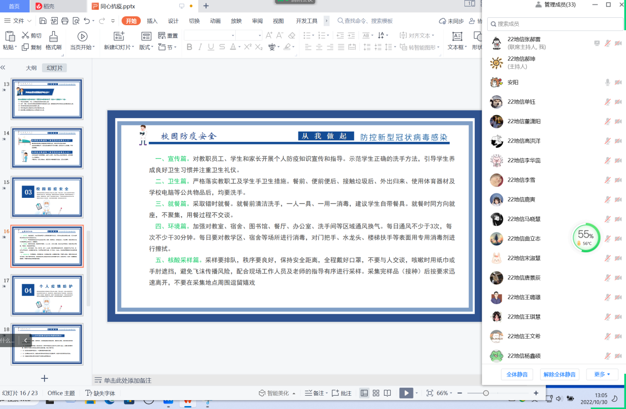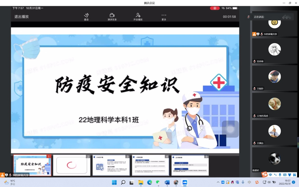 为提高在校老员工防疫安全意识,高效配合防疫指挥中心疫情防控,伟德国际VICTOR1946各班于10月30日召开线上“防疫安全知识”主题团日班会。