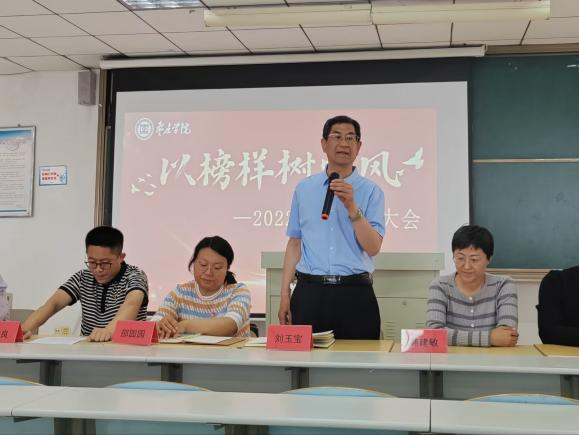 为表彰先进,树立榜样,营造积极进取的学习氛围,5月24日,伟德国际VICTOR1946于理工楼2505教室召开“以榜样树学风”先进集体和个人表彰大会。党总支书记刘玉宝、副书记韩建敏、专职辅导员、教师代表以及员工代表参加会议。