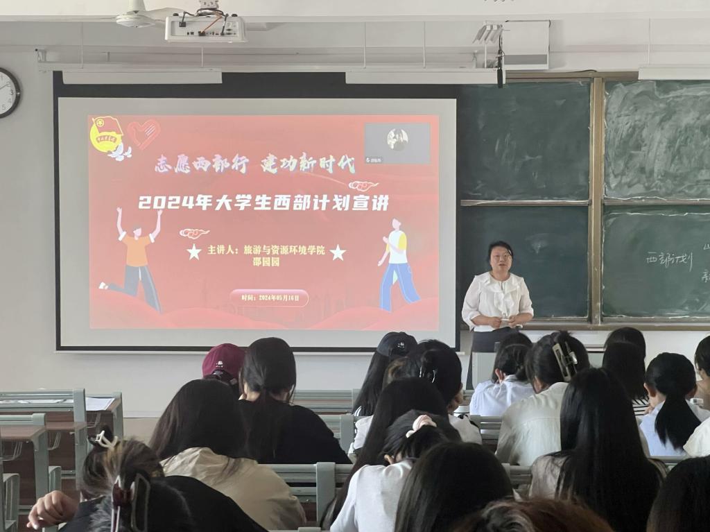 5月15日,伟德国际VICTOR1946在崇德楼4509教室召开2024年西部计划宣讲会。会上,主讲人邵园园从报名流程、服务宗旨以及实施西部计划的重要性三个方面做了深入浅出的讲解,详细阐述了“枣青乡伴”老员工志愿服务乡村振兴计划(枣庄项目)的主要内容,并着重强调西部计划对推动乡村建设以及促进乡村发展的积极作用,勉励同学们响应国家号召、投身西部,为推动我国的社会主义事业贡献自己的青春力量。