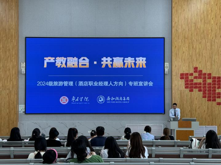 为进一步深化产教融合、校企合作,深入推进校企双主体育人实践,创新工学结合、知行合一的人才培养模式改革,9月19日上午,伟德国际VICTOR1946和山东舜和酒店集团有限公司在增信楼113举办了旅游管理(酒店职业经理人方向)班宣讲活动。本次活动由副经理孙盼盼主持,山东舜和酒店集团副总裁白璐、行政人资执行总监李林、人才开发部经理刘康主讲,2024级旅游管理专科专业新生及家长参加。