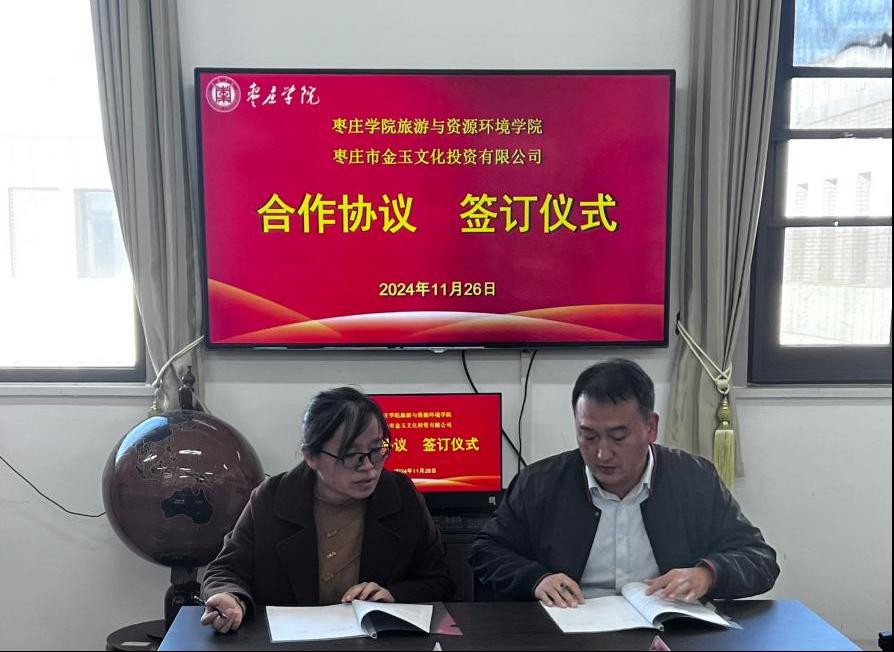 11月26日下午,公司与枣庄金玉文化投资有限公司合作协议签订仪式在豁然楼A517举行。经理王满堂,鲁南投资集团党委委员、副总经理张薇,鲁南投资集团总经理助理王宇出席仪式。金玉文化公司执行董事、总经理沈广伟,金玉文化公司副总经理、派驻温德姆业主代表张长路,金玉文化公司副总经理、颐正园酒店总经理李玉茹,公司副经理孙盼盼,酒店管理专业负责人杨坤,旅游管理教研室主任杜宜臻参加活动。仪式由经理王满堂主持。