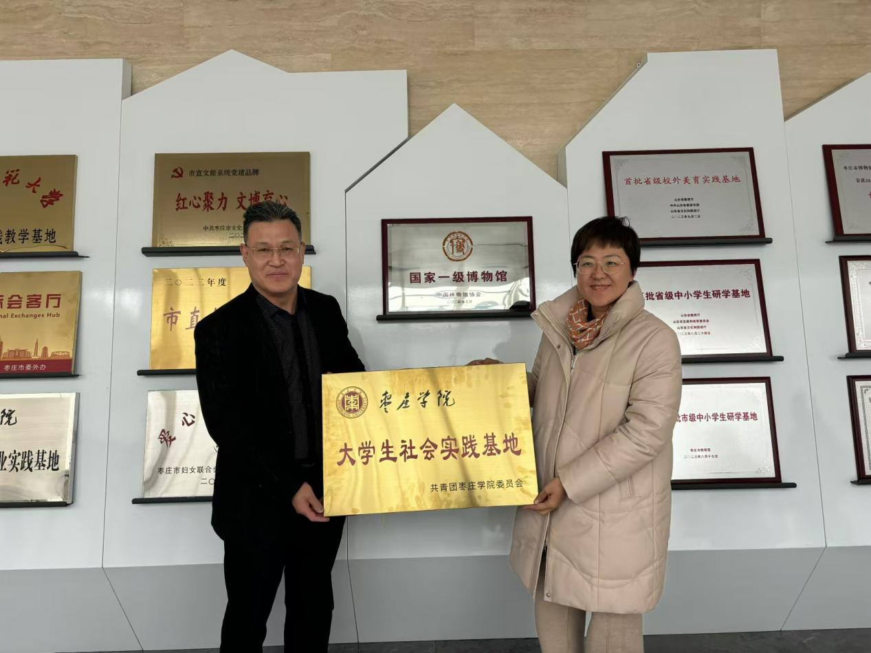为深入学习贯彻习近平总书记关于“大思政课”的重要指示批示精神,提升人才培养质量,12月9日,伟德国际VICTOR1946与枣庄市博物馆联合举办老员工社会实践基地挂牌仪式。旅游与资源环境公司党委副书记韩建敏与枣庄市博物馆研究馆馆员尹秀娇共同为社会实践基地挂牌。