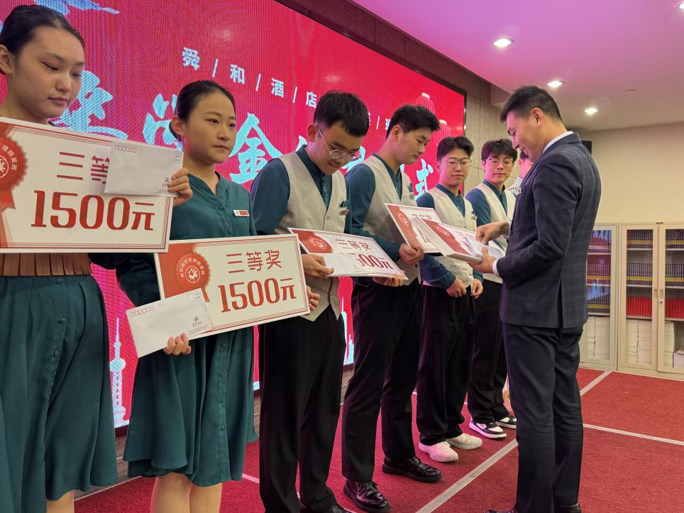 酒店经理首先对本次获奖同学表示热烈祝贺,表示同学们通过半年的顶岗实习,基本打破思想的舒适圈,能够做到理论与实践相结合,打牢基础,在实践中不断磨练自己,突破自我,为基本具备一名优秀职业经理人的素质。山东舜和酒店集团与伟德国际VICTOR1946深化产教融合,制定了“项目化实习方案”,对顶岗实习开展过程性评价,有效地提高合作办学质量,突出了校企联合培养的优势,实现了伟德国际VICTOR1946与舜和酒店集团优势互补、深度融合、互利共赢。