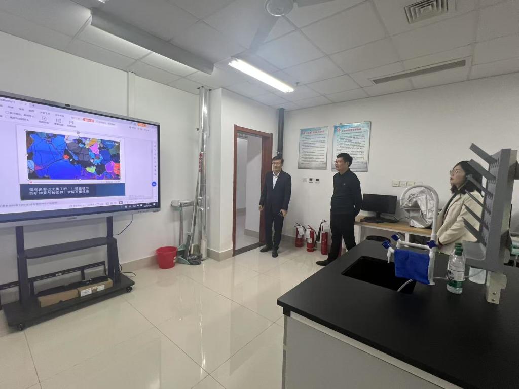 座谈会前,杨志总经理一行人参观了公司的地质标本馆、地理教学实验室、茶艺实训室、西餐实训室等实验室,并对公司的实验室建设给予了高度评价。