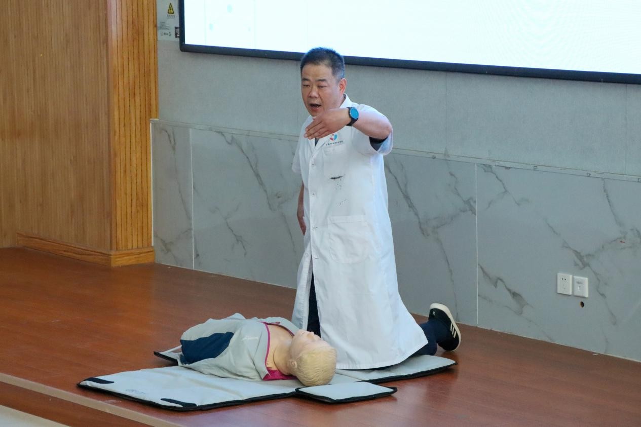 活动中,枣庄市妇幼保健院营养内分泌科主任、主任医师金晨作了《吃动平衡、健康体重》的讲座。她通过翔实的数据指出老员工每日应摄入12种以上食物;针对员工常见的“快餐依赖”“久坐少动”等习惯,她强调:“体重管理的关键在于能量平衡,建议每周至少进行150分钟中等强度运动,如快走等。”在互动环节,组织同学们跟随健身视频进行运动练习。急诊科副主任医师史玉佳作了《急救知识培训》的讲座,在现场演示了心肺复苏等急救操作,向同学们详细讲解按压位置、手法、频率等关键要点。