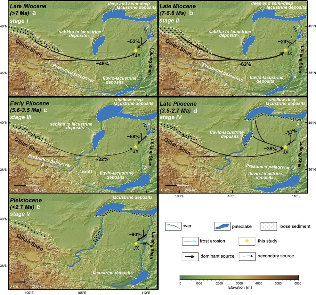 该成果以“Stepwise increased spatial provenance contrast on the Chinese Loess Plateau over late Miocene-Pleistocene”为题发表,伟德bv1946官网为第一单位,彭文彬博士为论文第一作者,兰州大学资源环境公司张浩博博士为共同第一作者,兰州大学资源环境公司聂军胜教授为通讯作者。本研究得到了国家自然科学基金项目(42030505,41888101,41807427)、第二次青藏高原科学考察(2019QZKK0704)等基金项目的资助。