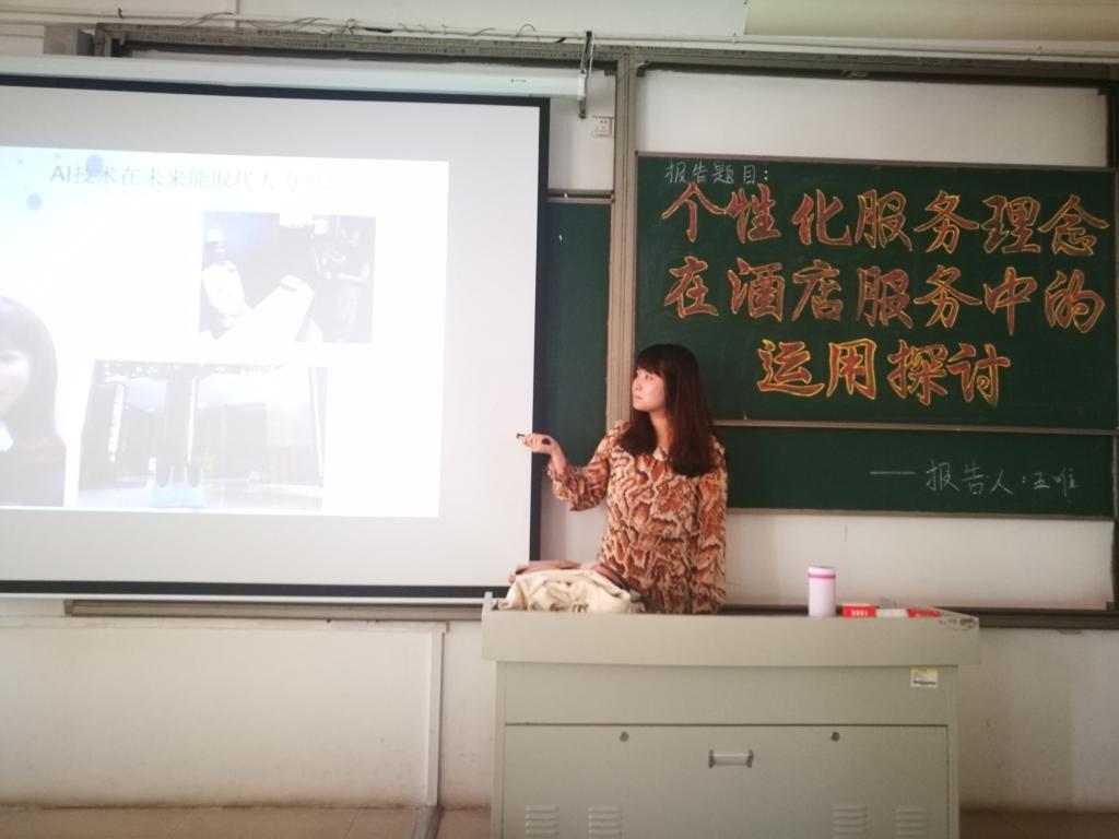 为培养员工的学习兴趣,增长同学们的专业知识,201958日下午2:30,伟德国际VICTOR1946在理工楼2408开展了以“个性化服务理念在酒店服务中的运用探讨”为题目的学术报告会,王唯老师为本次报告会的主讲人,酒店管理专业的员工参加此次报告会。
