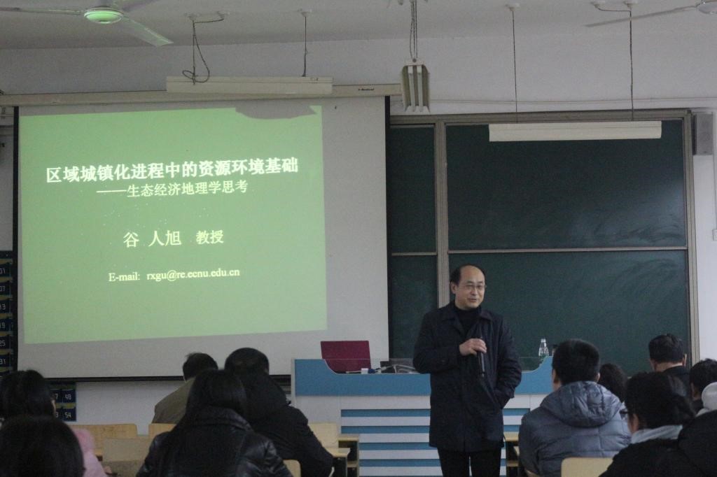 1月4日,公司伟德国际VICTOR1946特聘教授、华东师范大学地球科学部城市与区域科学公司教授、博士生导师谷人旭应邀来校开展学术交流活动。