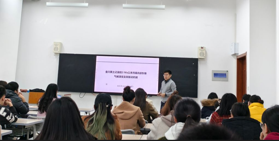 在报告会议上,商圣潭博士就“金川黄土记录的3Ma以来青藏高原东缘气候演变及其驱动机制”进行了学术报告。商圣潭博士对青藏高原东部金川黄土开展了详细的环境磁学、矿物学的研究工作。通过相对古强度等定年方法,认为金川黄土的堆积年龄至少有3Ma。通过对青藏高原东缘大量表土样品的环境磁学测量,建立了与现代气象因子良好的函数关系,成功重建了青藏高原近3Ma以来的降水和温度历史。通过与亚洲其他区域代用指标的对比,主要有以下特征和认识:1.重建的青藏高原东部降水具有显著的40万年和10万年周期,受地球轨道偏心率变化的影响显著;2.青藏高原内部的粉尘可能是链接青藏高原气候以及海洋碳埋藏的纽带,粉尘通过铁施肥效应,促进了海洋初级生产力的爆发以及碳埋藏,加剧全球气候的降温和印度季风的变化,进而在金川黄土中得以记录。3.针铁矿和赤铁矿比值记录的印度季风在近3Ma以来呈现持续干旱化的特征,并且具有明显的40万年周期,同样受到偏心率的影响。这种干旱化特征与东亚季风区以及中国西北内陆等地的气候特征一致。
