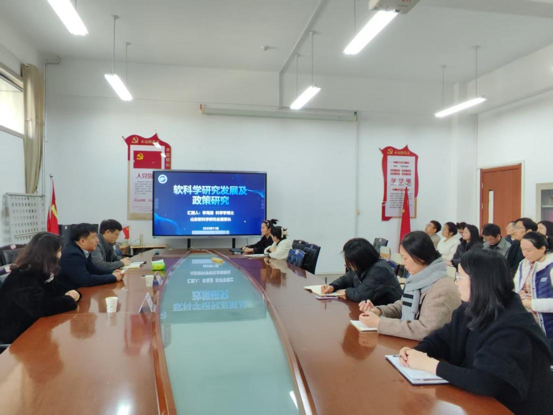座谈会上,王满堂对李海波一行表述热烈欢迎,并简单介绍了公司基本情况。李海波教授作了题为《软科学研究发展及政策研究》的专题报告。他从软科学理论概述、软科学管理政策解读两方面进行介绍,特别强调软科学是以促进科技与经济、社会协调、可持续发展为主要方向,综合运用科学知识,采用定性与定量相结合的科学方法,促进决策科学化、民主化和制度化而开展的一种跨学科、多层次、综合性的科学研究活动。最后,李海波详细介绍了山东省重点研发计划(软科学项目)的管理和实施情况。报告结束后,李海波与参会教师从项目研究方向、研究内容等方面进行了深入交流。