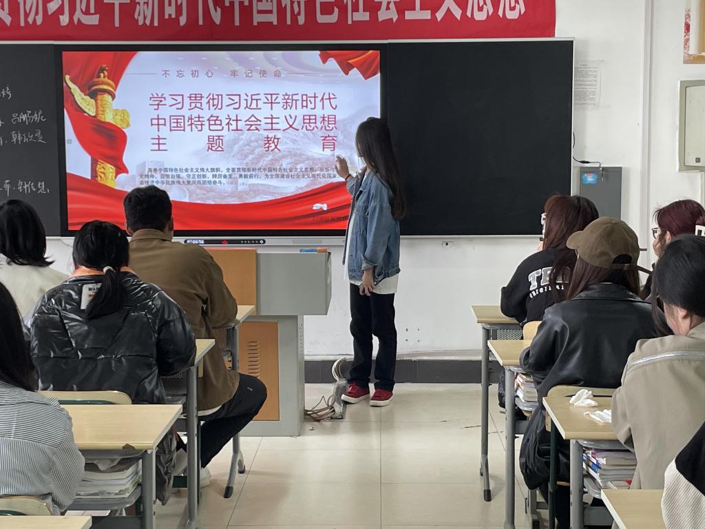 班会伊始,主讲人结合PPT、视频资料,围绕习近平新时代中国特色社会主义思想内容讲述了怎样为奋进新征程凝心聚力,带领同学们深入认识了习近平新时代中国特色社会主义思想对青年人的要求。主讲人倡议,同学们要自觉用习近平新时代中国特色社会主义思想武装头脑,既要做好员工的本职工作,更要培养政治意识,不断提高个人政治觉悟和素养,做真正的社会主义接班人。