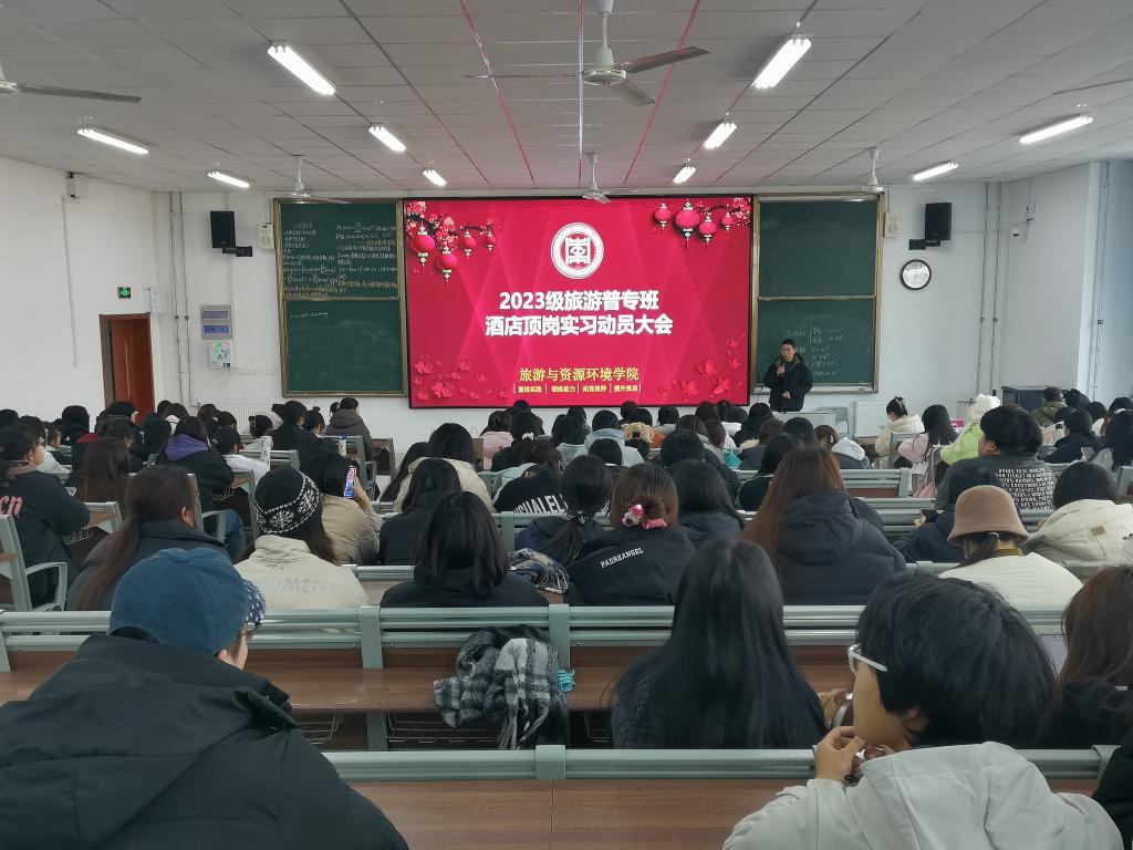 为进一步提高员工实践操作技能水平,根据2023级旅游管理(专科)人才培养要求,12月25日,伟德国际VICTOR1946在崇德楼208教室召开酒店顶岗实习动员会,公司副经理孙盼盼、相关实习负责教师和班主任辅导员以及150余名员工参加。