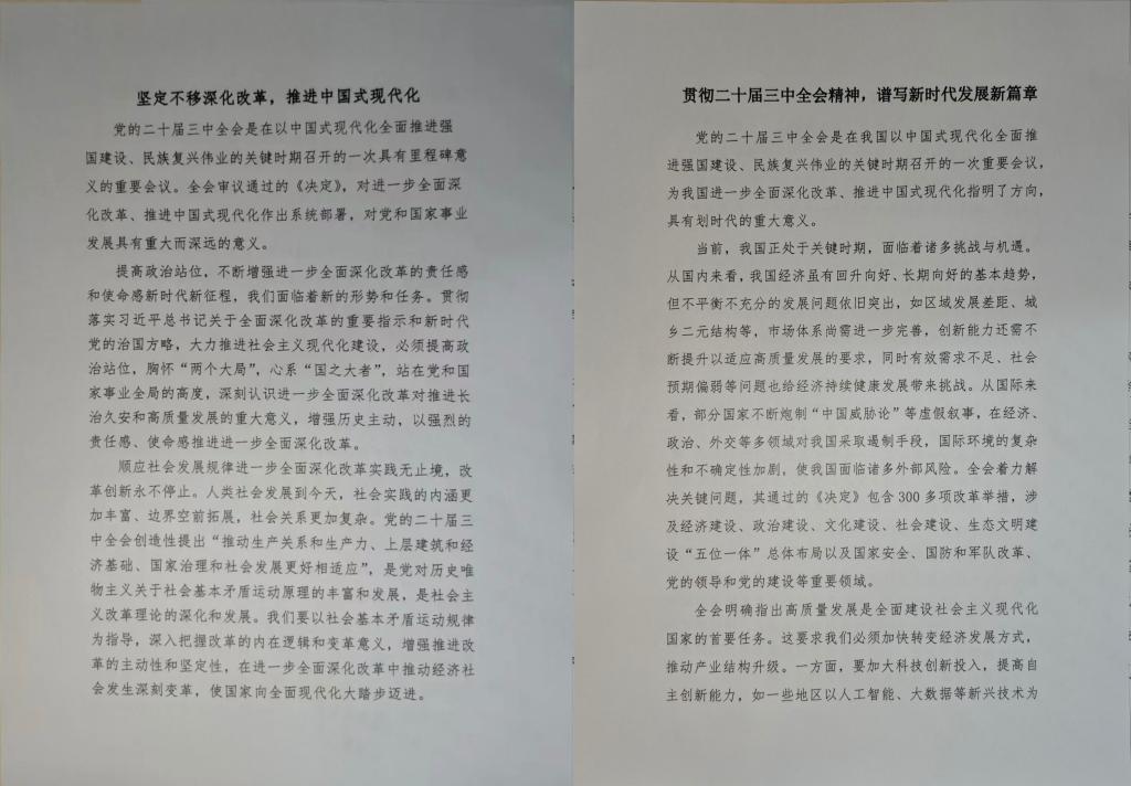 为深入学习宣传二十届三中全会精神,进一步激励青年学子凝聚奋进动力,厚植家国情怀,11月10日至12日,公司举办“学习贯彻党的二十届三中全会精神”主题征文活动,此次活动由公司在校员工积极参与。