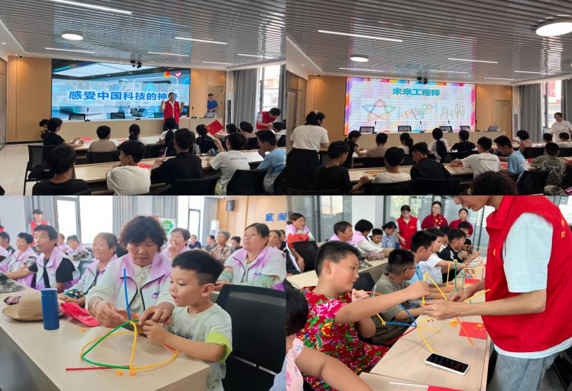 7月5日,服务团通过播放生动有趣的科教视频向孩子们展现中国科技发展的辉煌成就。活动中特别设计了“小吸管‘搭’世界”实践环节,让孩子们在动手搭建创意建筑的过程中学习了基础力学知识,培养了空间想象能力。团队成员全程指导,帮助孩子们将天马行空的创意转化为立体作品,在实践中点燃科技探索的热情,全方位培育孩子们的科技创新意识与探索精神。