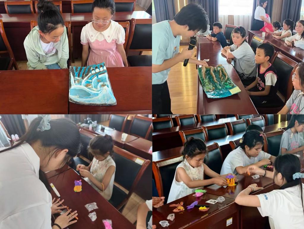 7月3日,依托地理科学和旅游管理的专业优势,服务团以“祖国山河文化探索”为主题创意开展系列特色课程。团队成员带领孩子们拼插中国地图,帮助其辨识家乡方位,有效增强孩子们对祖国地理的理解与学习热情。随后,服务团开启“指尖上的神奇地貌”彩泥手工之旅,引导小朋友们捏塑地质地貌,助力其在动手动脑、协同创作中锻炼实践与创新能力。互动期间,团队成员创新融入“启发式讲解 + 互动问答”等形式,生动阐释祖国地质地貌神奇瑰丽,成功点燃了孩子们对祖国山河的探索热情,让知识与兴趣双向奔赴。