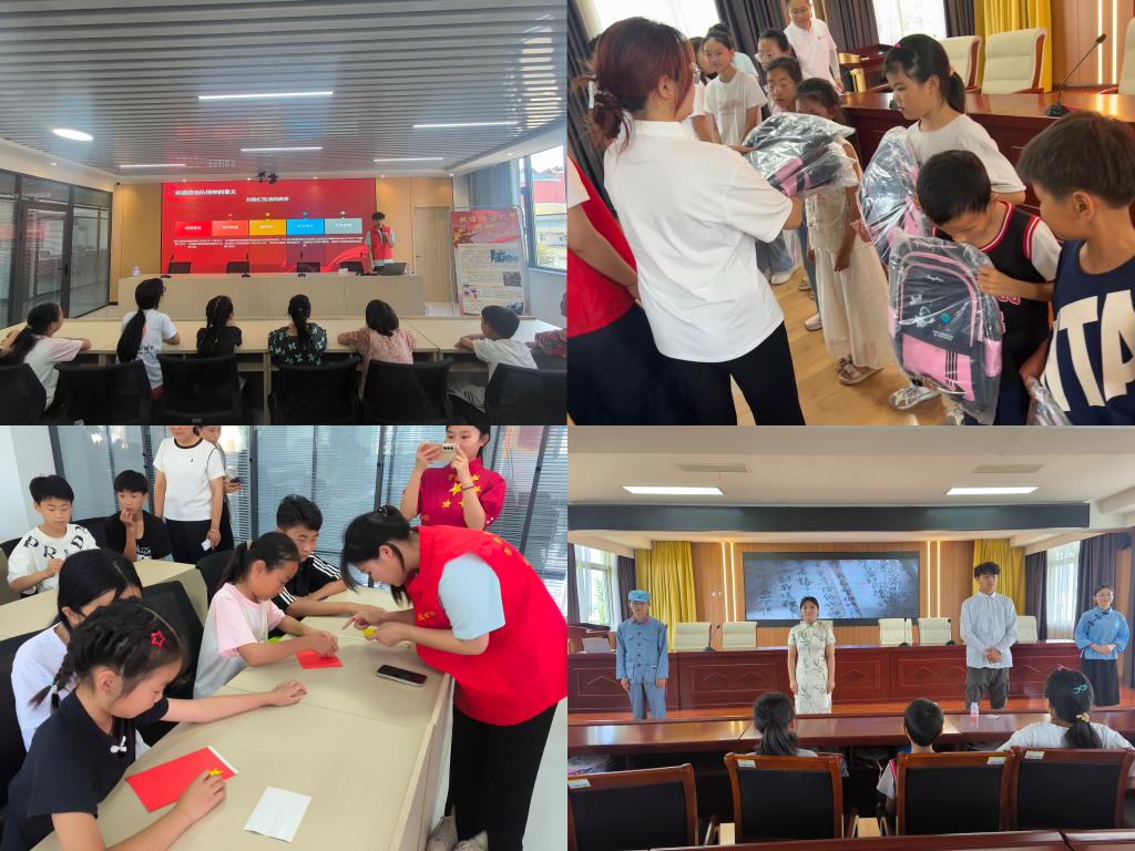 7月2日,服务团开展"铁道游击队"红色故事讲解活动,团队成员通过PPT生动讲述“飞虎夜袭”“智取火车”等经典战役,带领孩子们重温革命先辈的热血担当;服务团特别编排《无字家书》情景剧,深情演绎革命先辈的坚定信念与家国情怀,让红色教育更加生动鲜活。在互动环节,团队成员指导孩子们认识并制作国旗、党徽,鼓励他们树立远大理想,践行社会主义核心价值观,让孩子们深刻感悟到了红色精神的力量,更在他们心中播下了爱国爱党的种子。活动最后,服务团向留守儿童捐赠20余份小书包及文具用品,期待这份爱心的传递能让孩子们感受到社会的温暖与关爱。