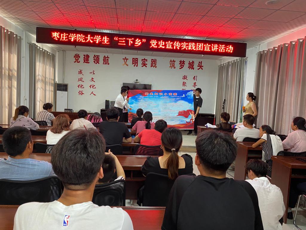 7月9日至11日实践团队先后前往薛城区周营镇、山亭区城头镇以及峄城区吴林街道进行党史宣讲活动,本次活动通过红色歌曲演唱、红色情景剧演出、中国共产党精神谱系解说以及党史知识小竞赛等多种途径进行。通过一系列的史实重温,让小分队成员们仿佛也重回到了那段峥嵘岁月,见证了老一辈革命者铁骨铮铮、忠诚为国之品格。