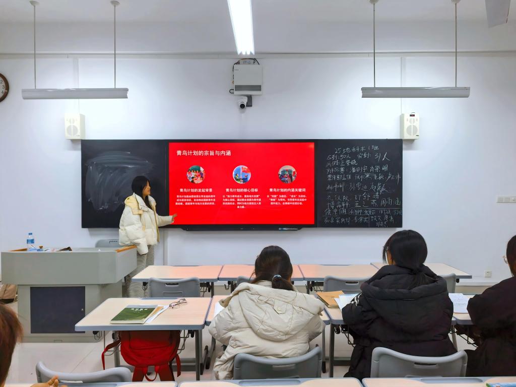 活动伊始,主讲人借助精心制作的PPT,深入解读了“青鸟计划”的内涵与意义。该计划立足“联系学子、服务引才、汇集智力”三大定位,以“实习实践、高质量就业、双创空间、校地合作”为四大支撑,推动“引凤还巢”。随后,主讲人详细介绍了“青鸟计划”的报名流程,帮助同学们直观了解参与方式。主讲人指出,同学们可通过微信搜索“青鸟计划”小程序完成注册、简历填写及岗位申请,或关注地方团委、“创青春”公众号按要求报名寒暑期实习实践,以帮助大家便捷、高效地参与其中。此外,主讲人还结合自身经历,采取互动深化认识的形式,分享在“青鸟计划”平台上的求职经验以及实习工作的收获与成长,更好地激发同学们的参与积极性。