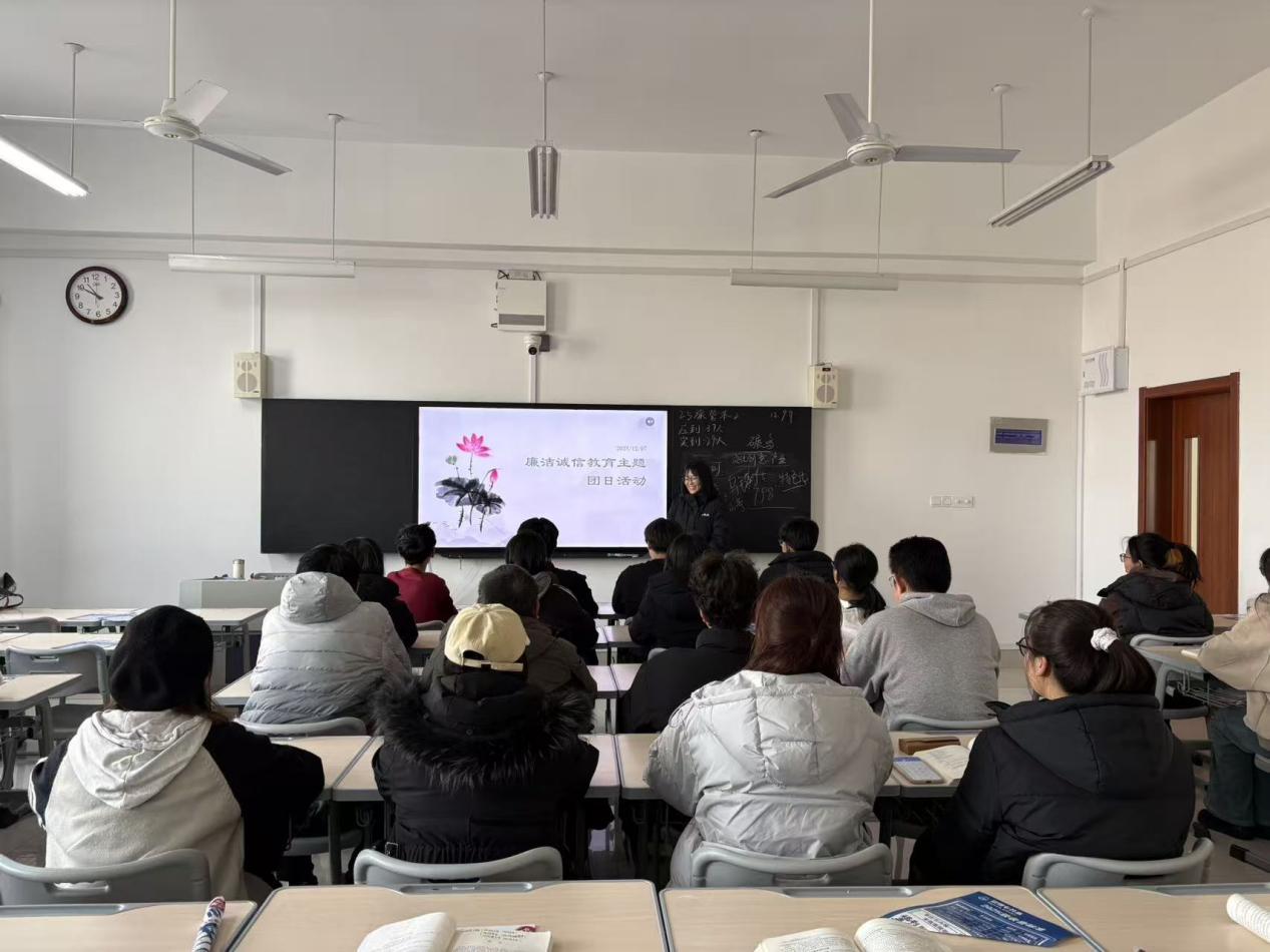 活动伊始,主讲人围绕团日主题,通过通俗的内涵阐释、典型的警示案例及详实的准则解读带领同学们深入了解廉洁诚信的核心要义以及对个人成长成才、校园和谐发展的重要意义。随后,主讲人从青年员工日常学习生活实际与廉洁诚信建设要求出发,细致讲解校园场景中可能涉及的廉洁诚信风险点,帮助同学们提升辨别与规避能力,筑牢个人廉洁诚信思想防线。最后,主讲人强调,廉洁诚信是立身之本、成事之基,作为新时代青年要牢固树立廉洁诚信意识,自觉践行廉洁自律要求,让青春在坚守道德底线、涵养优良品德中书写青春答卷。